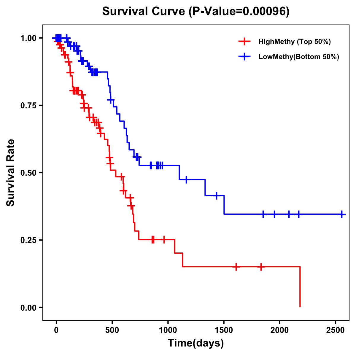 | Survival Curve of Pancreatic Cancer of Expression | Survival Curve of Pancreatic Cancer of Methylation | ||