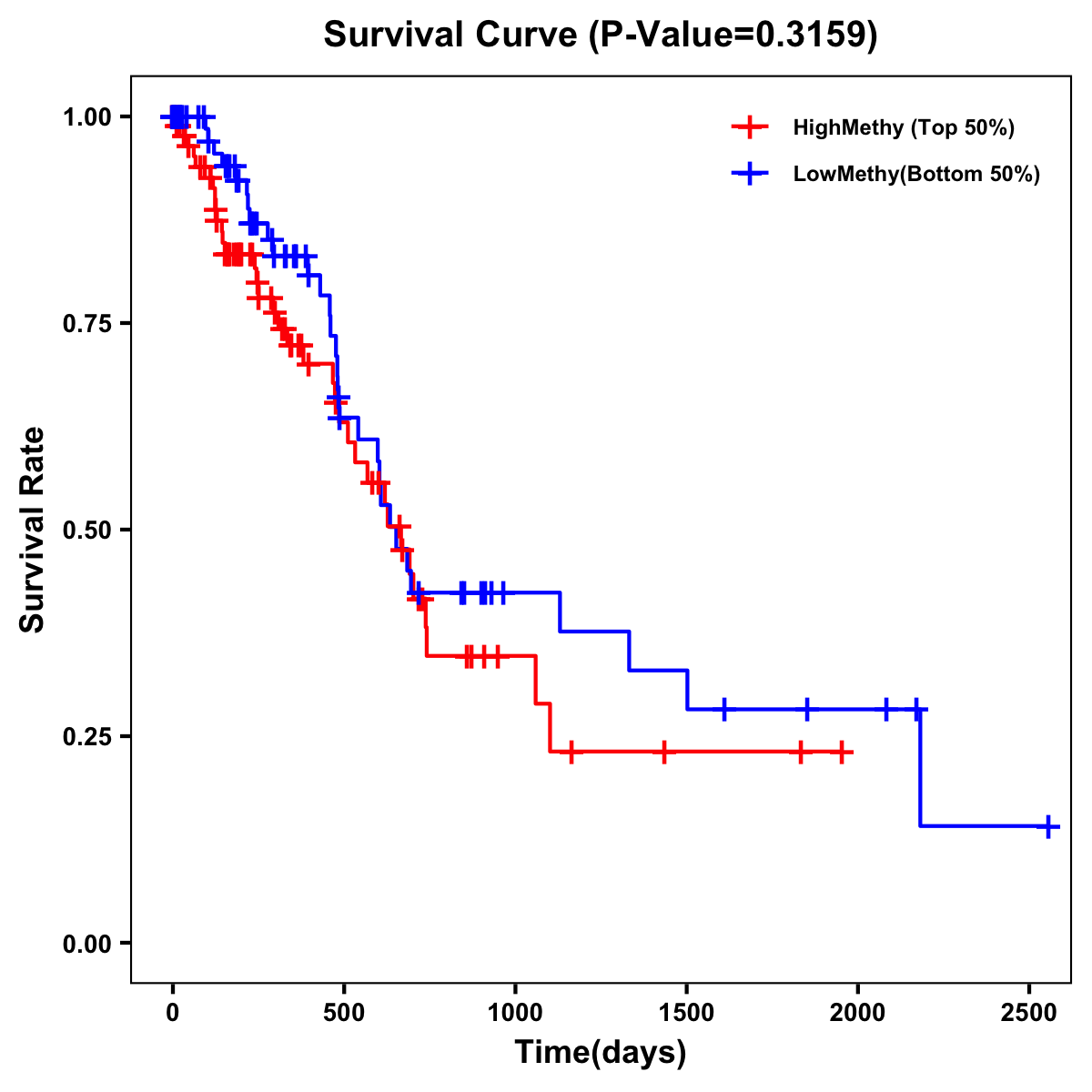 | Survival Curve of Pancreatic Cancer of Expression | Survival Curve of Pancreatic Cancer of Methylation | ||