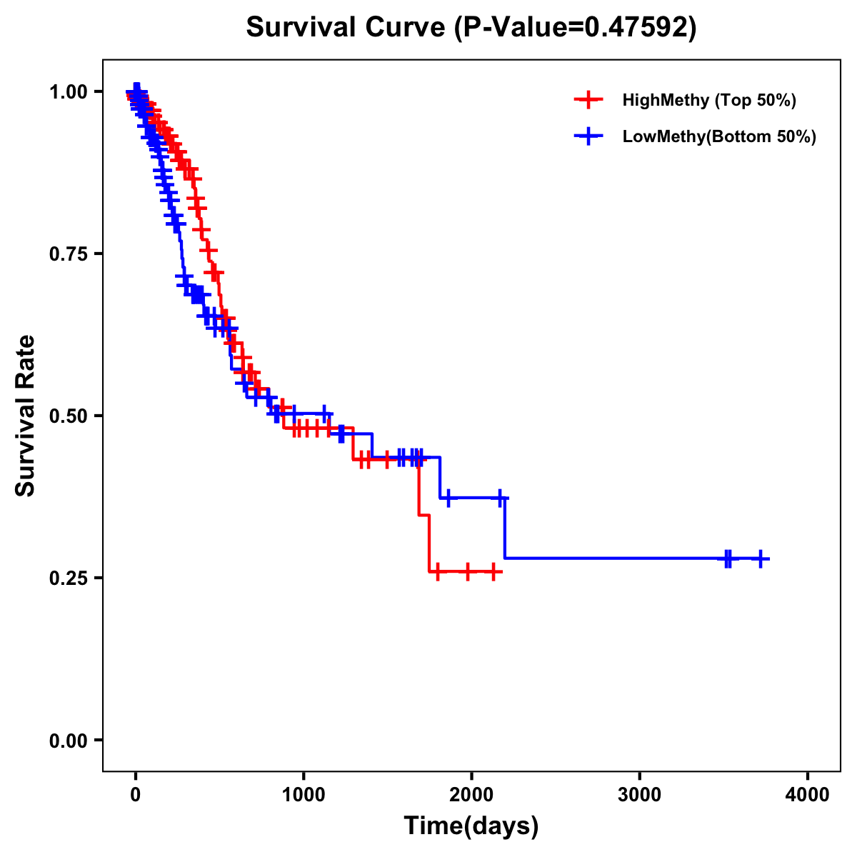 | Survival Curve of Stomach Cancer of Expression | Survival Curve of Stomach Cancer of Methylation | ||