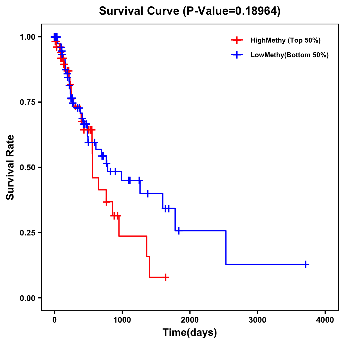 | Survival Curve of Esophagus Cancer of Expression | Survival Curve of Esophagus Cancer of Methylation | ||