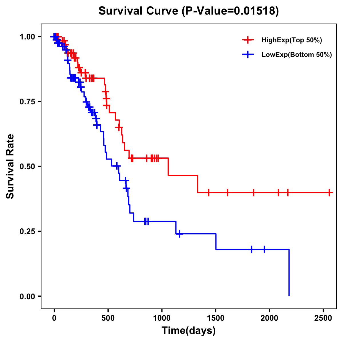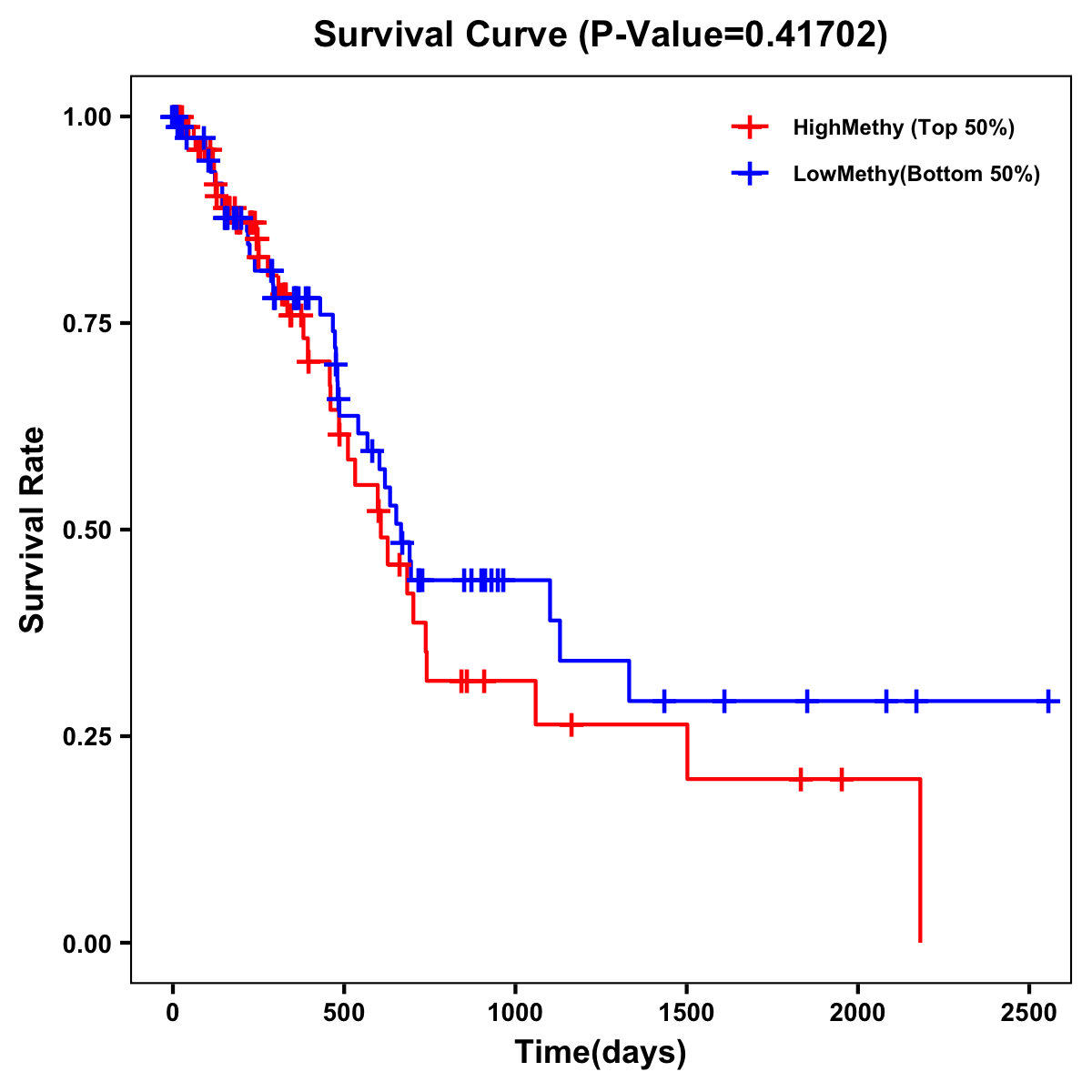 | Survival Curve of Pancreatic Cancer of Expression | Survival Curve of Pancreatic Cancer of Methylation | ||