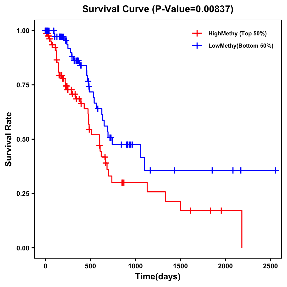 | Survival Curve of Pancreatic Cancer of Expression | Survival Curve of Pancreatic Cancer of Methylation | ||