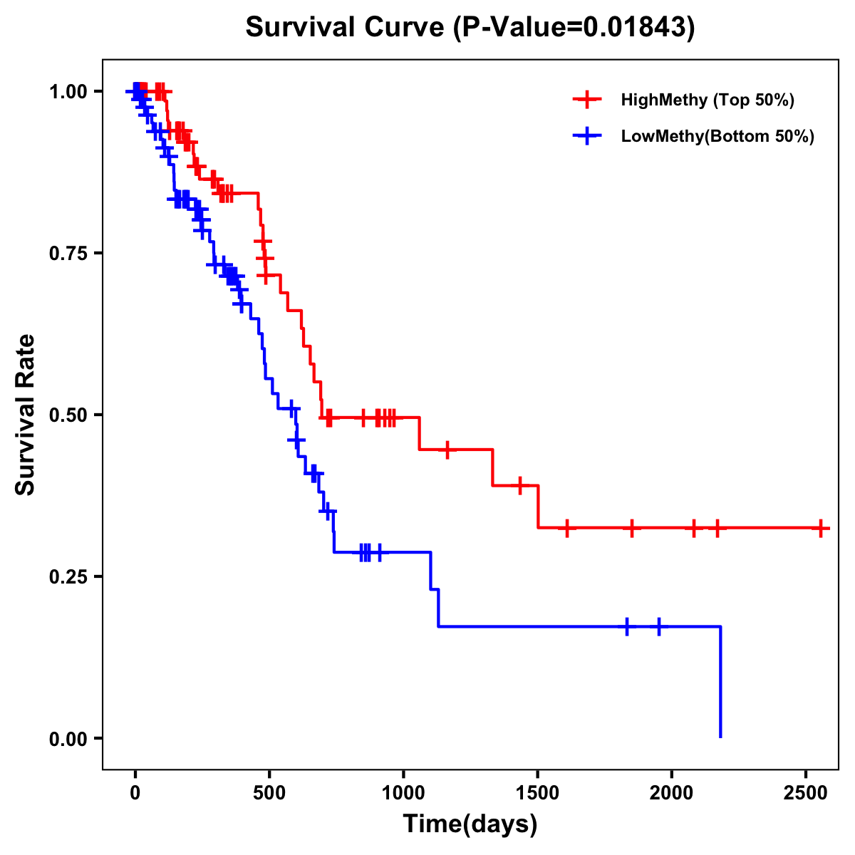 | Survival Curve of Pancreatic Cancer of Expression | Survival Curve of Pancreatic Cancer of Methylation | ||