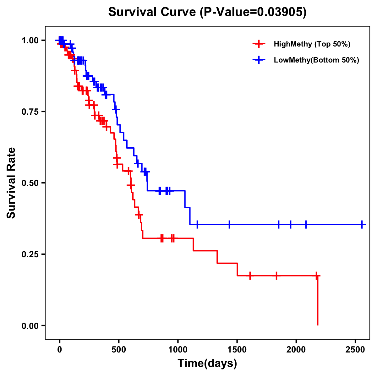 | Survival Curve of Pancreatic Cancer of Expression | Survival Curve of Pancreatic Cancer of Methylation | ||