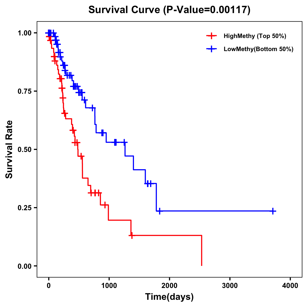 | Survival Curve of Esophagus Cancer of Expression | Survival Curve of Esophagus Cancer of Methylation | ||