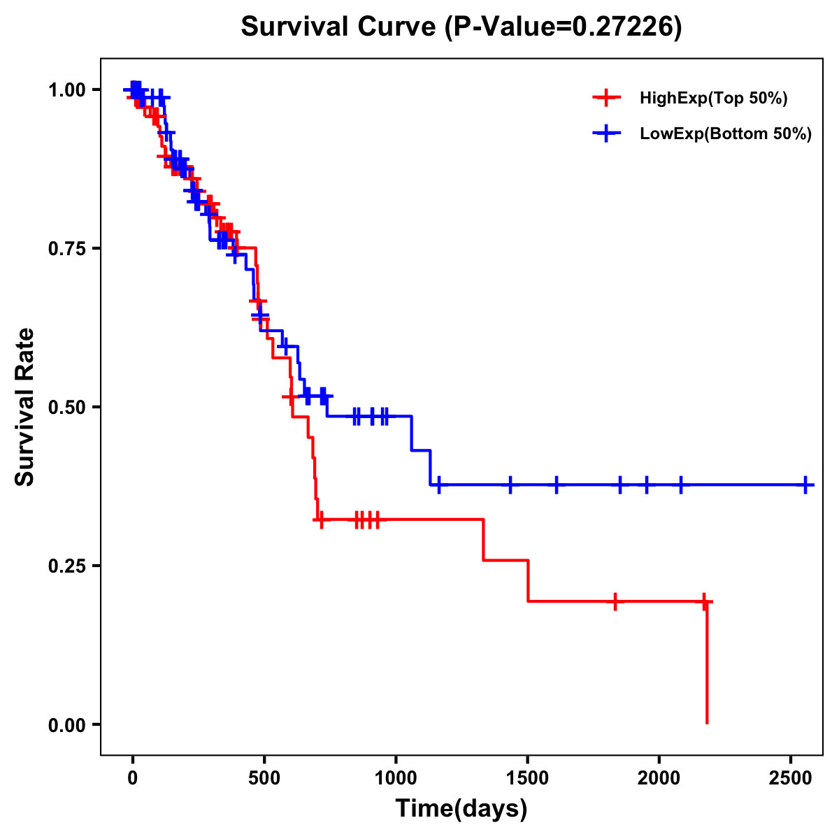 | Survival Curve of Pancreatic Cancer of Expression | Survival Curve of Pancreatic Cancer of Methylation | ||