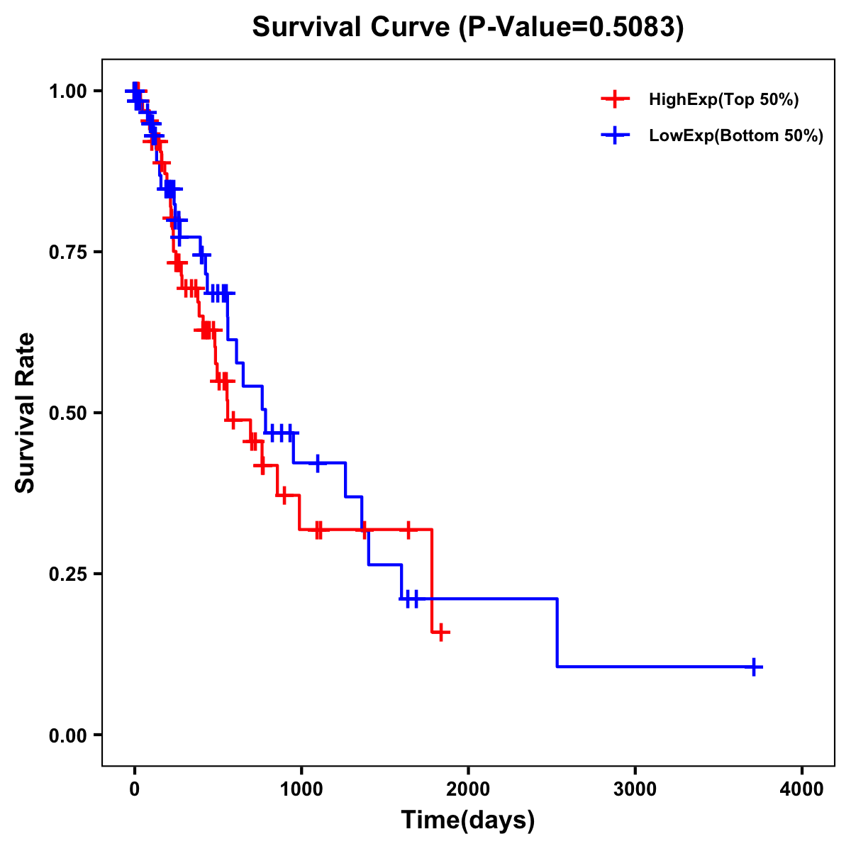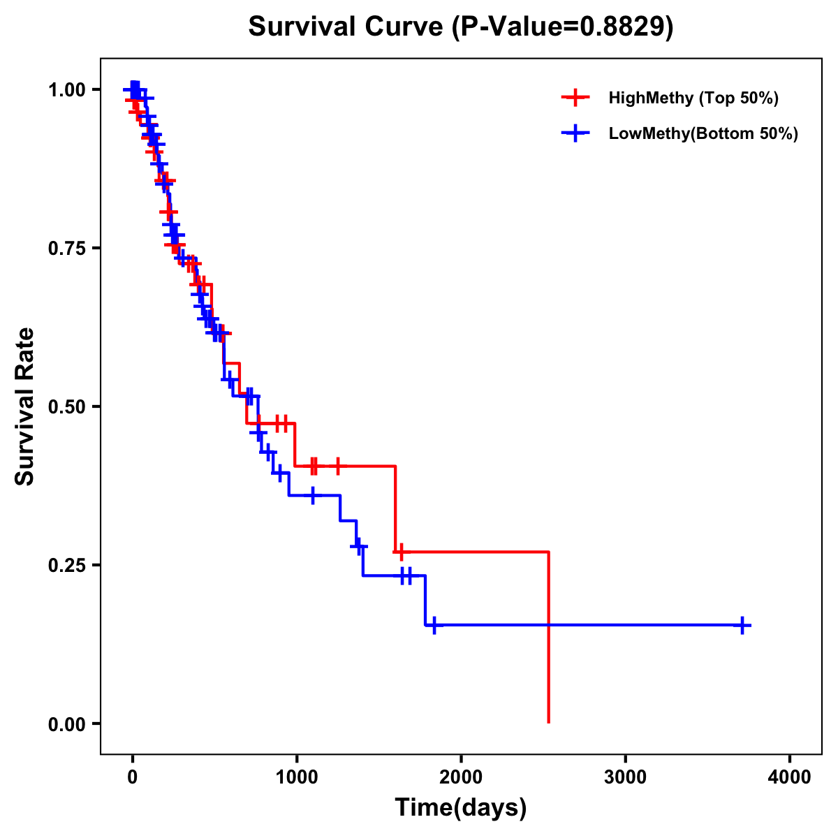 | Survival Curve of Esophagus Cancer of Expression | Survival Curve of Esophagus Cancer of Methylation | ||