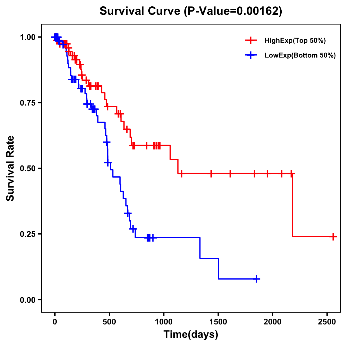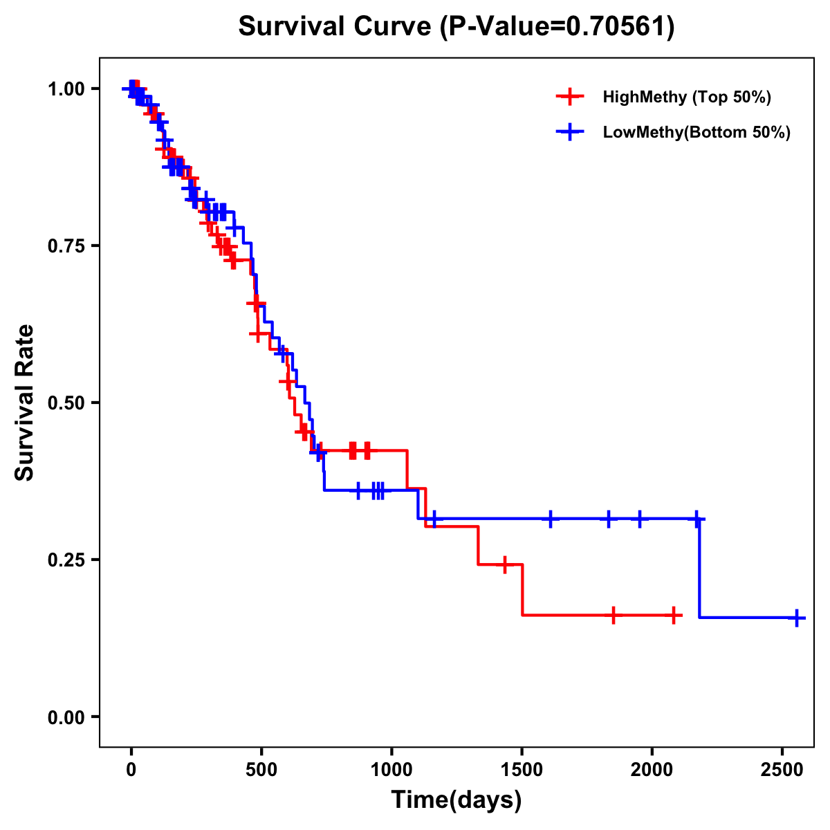 | Survival Curve of Pancreatic Cancer of Expression | Survival Curve of Pancreatic Cancer of Methylation | ||