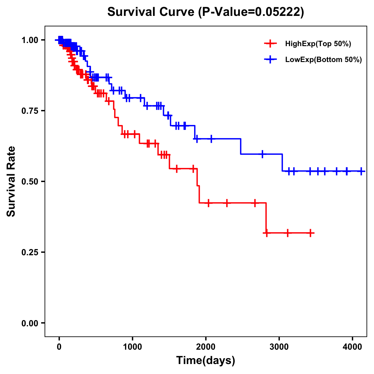Survival Curve of Rectum Cancer on Expression Level |