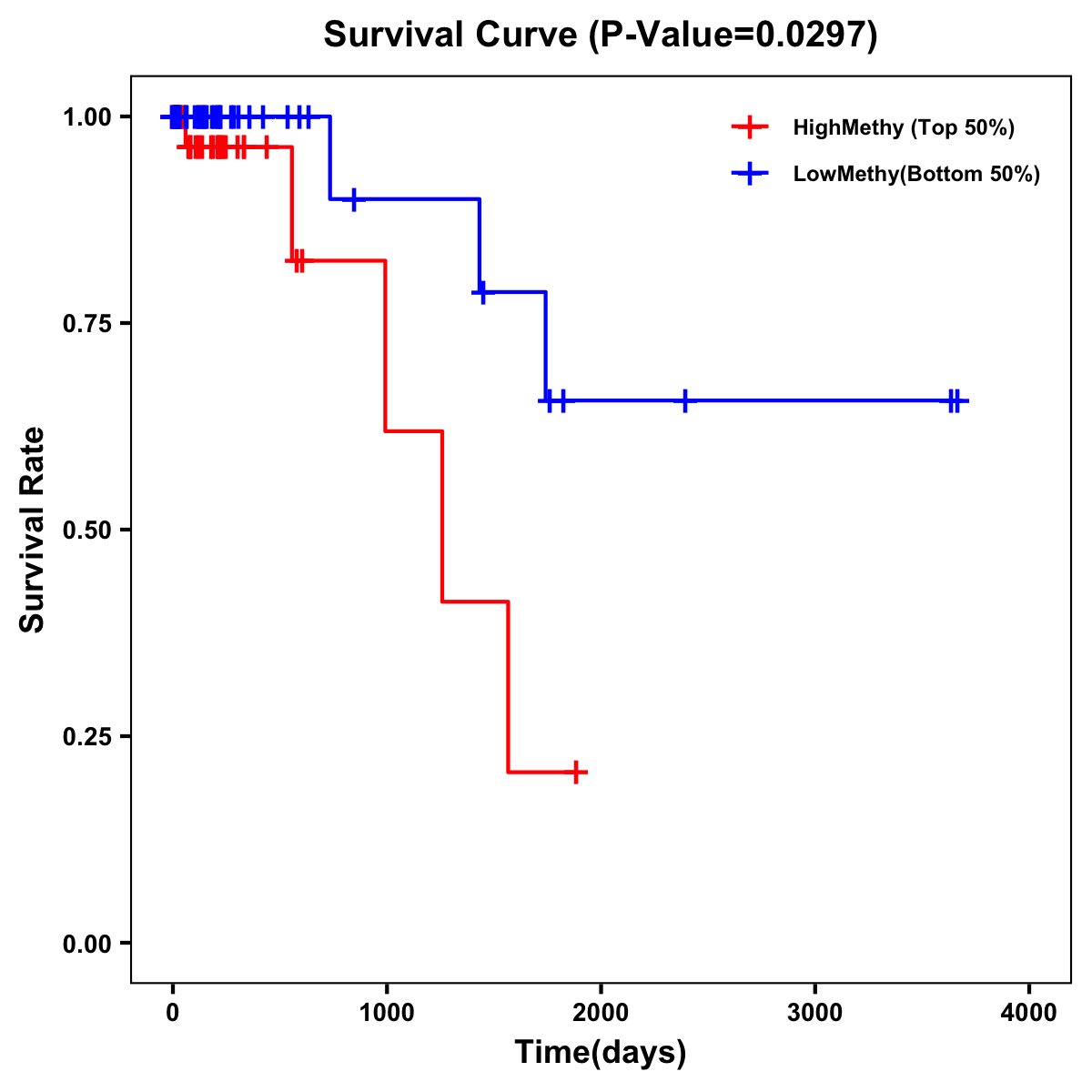 | Survival Curve of Colon Cancer on Methylation Level |