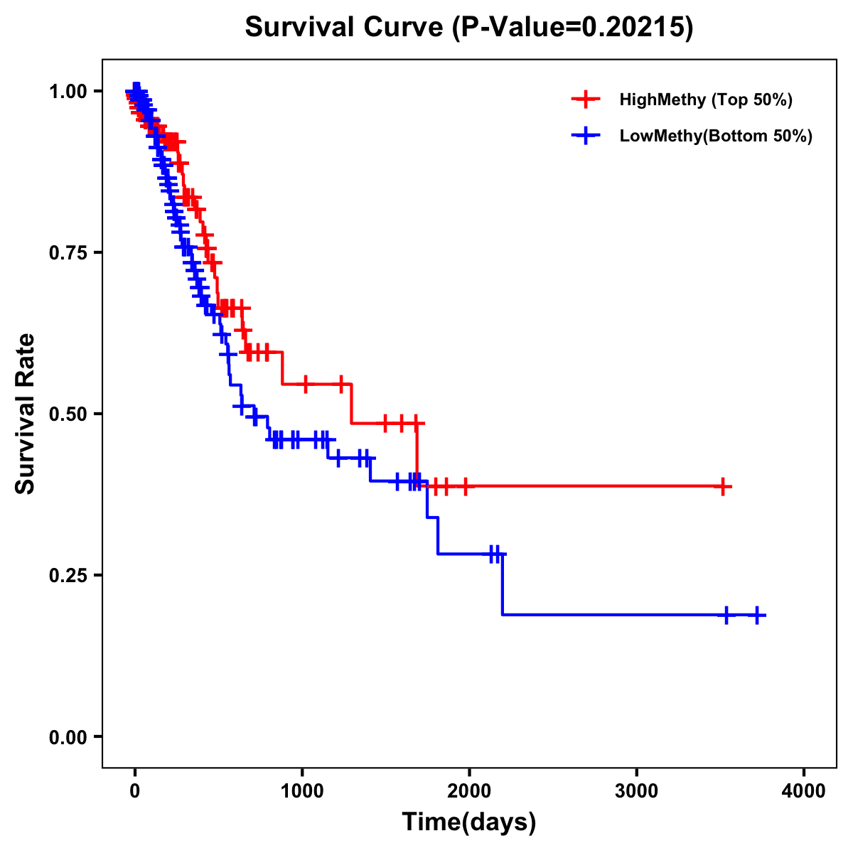 | Survival Curve of Stomach Cancer of Expression | Survival Curve of Stomach Cancer of Methylation | ||