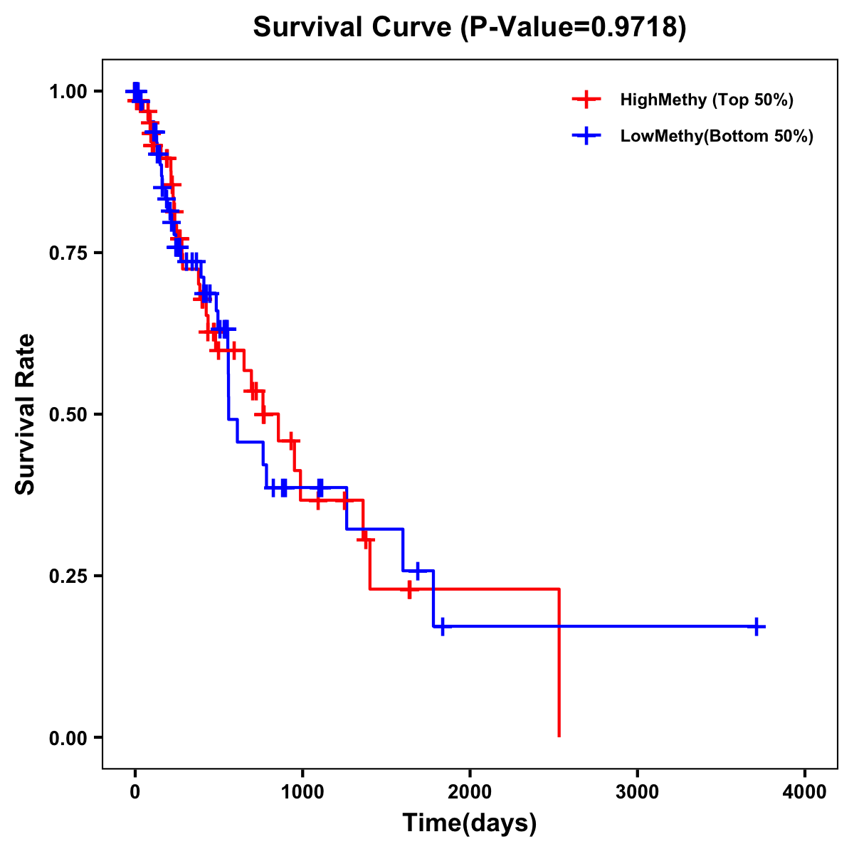 | Survival Curve of Esophagus Cancer of Expression | Survival Curve of Esophagus Cancer of Methylation | ||