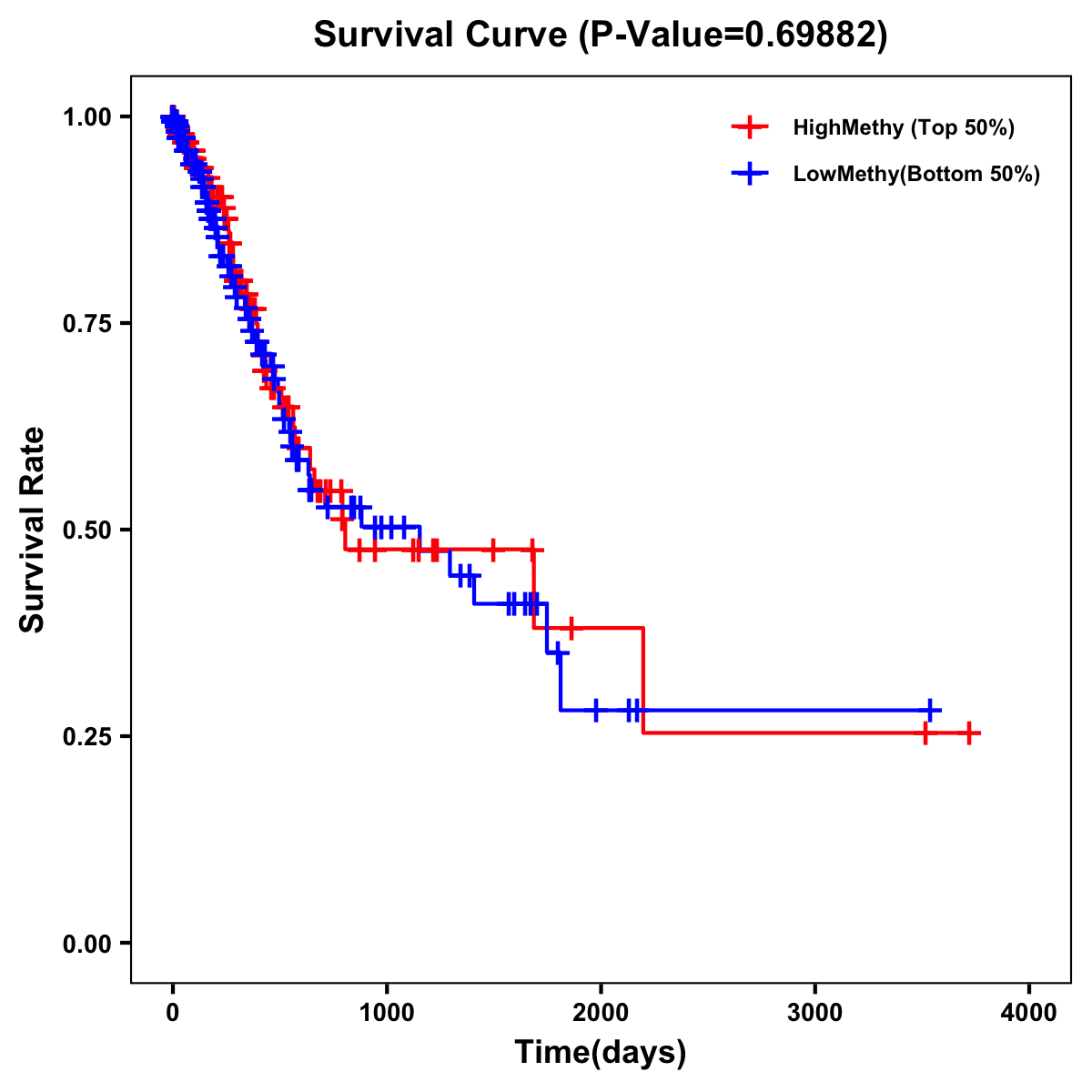 | Survival Curve of Stomach Cancer of Expression | Survival Curve of Stomach Cancer of Methylation | ||