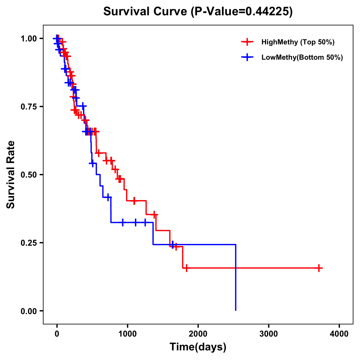| Survival Curve of Esophagus Cancer of Expression | Survival Curve of Esophagus Cancer of Methylation | ||