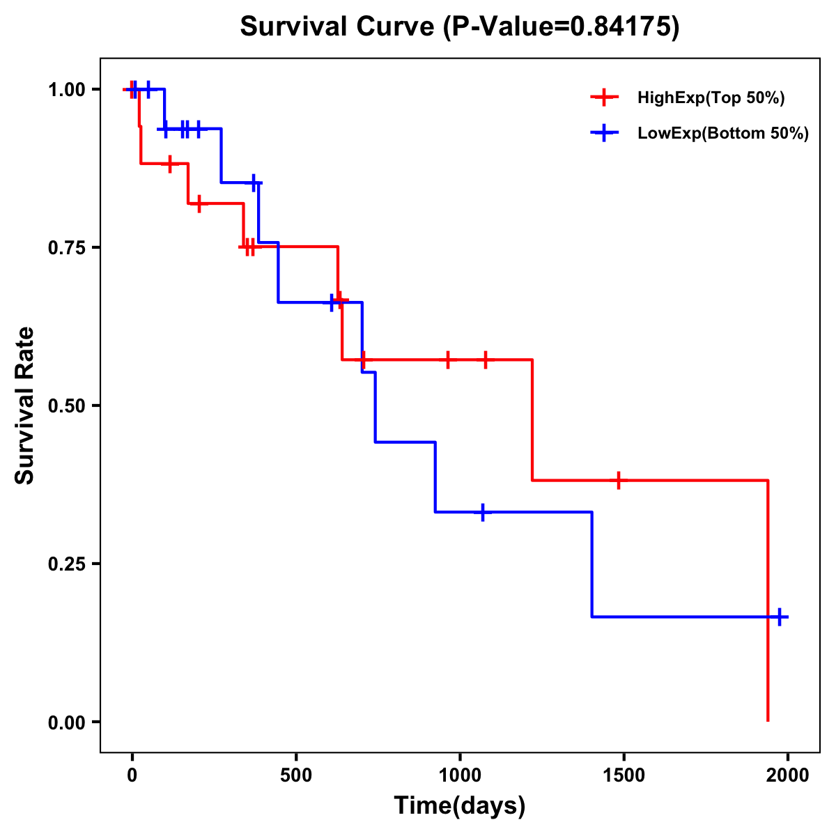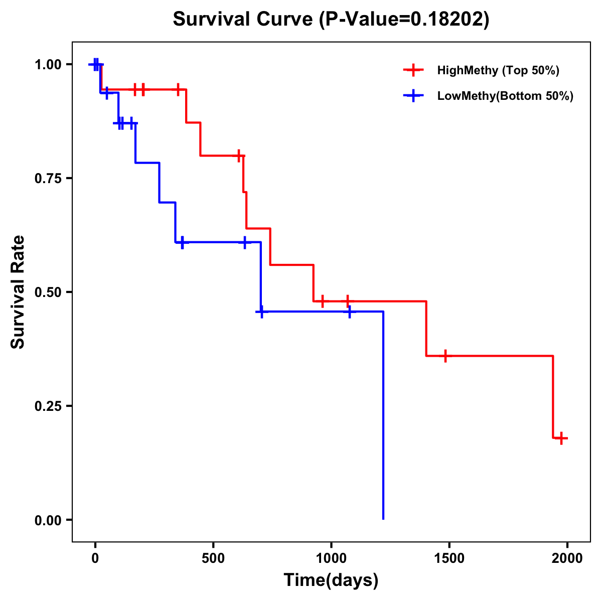 | Survival Curve of Biliary tract Cancer of Expression | Survival Curve of Biliary tract Cancer of Methylation | ||