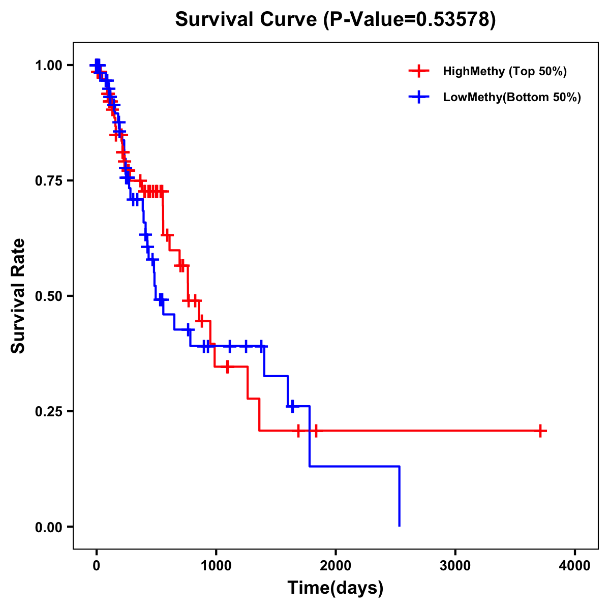 | Survival Curve of Esophagus Cancer of Expression | Survival Curve of Esophagus Cancer of Methylation | ||