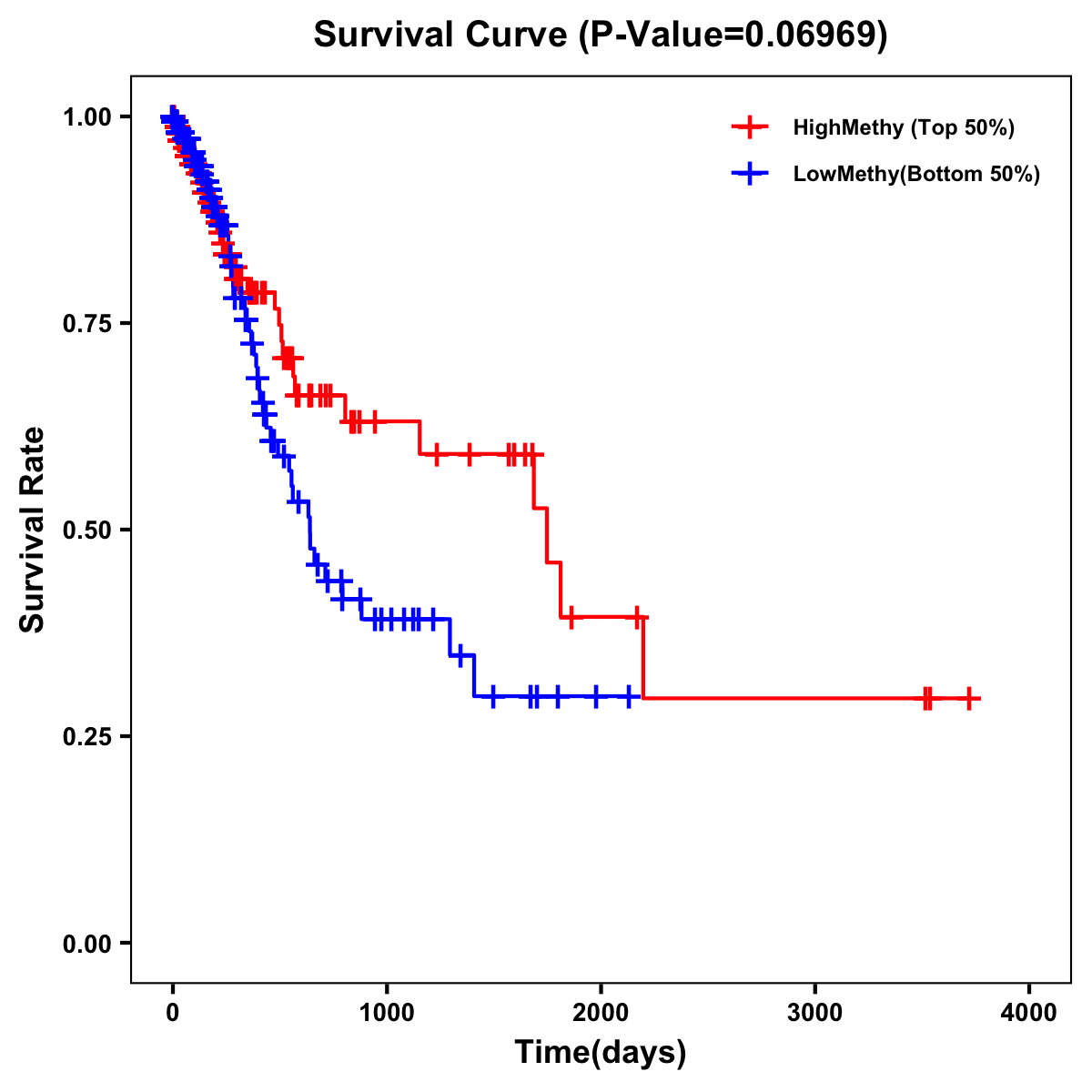 | Survival Curve of Stomach Cancer of Expression | Survival Curve of Stomach Cancer of Methylation | ||