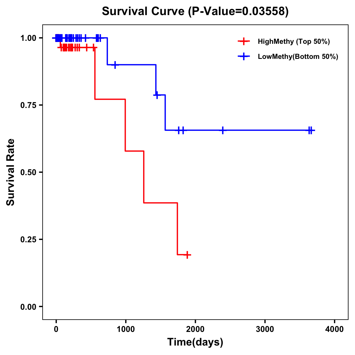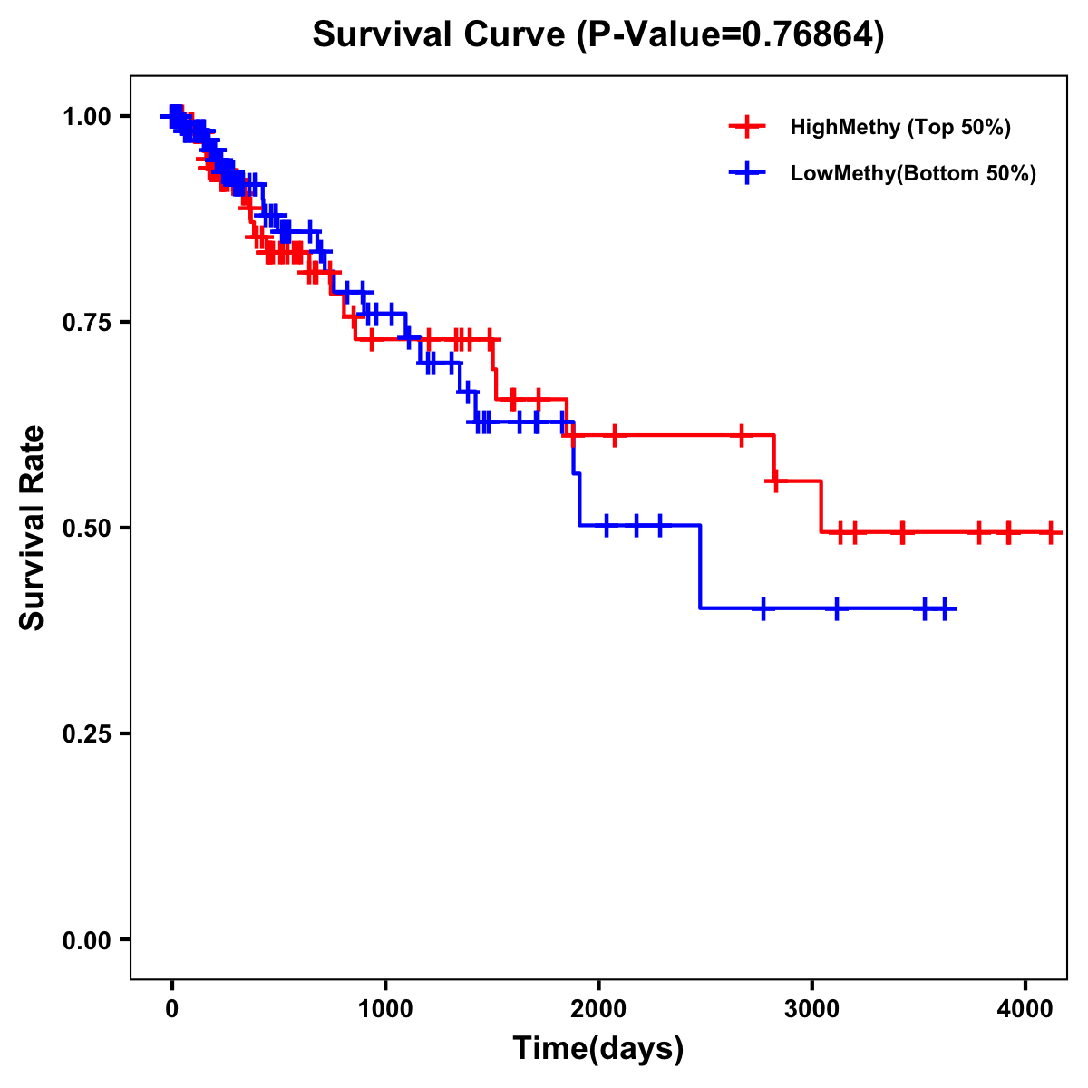| Survival Curve of Colon Cancer on Methylation Level |