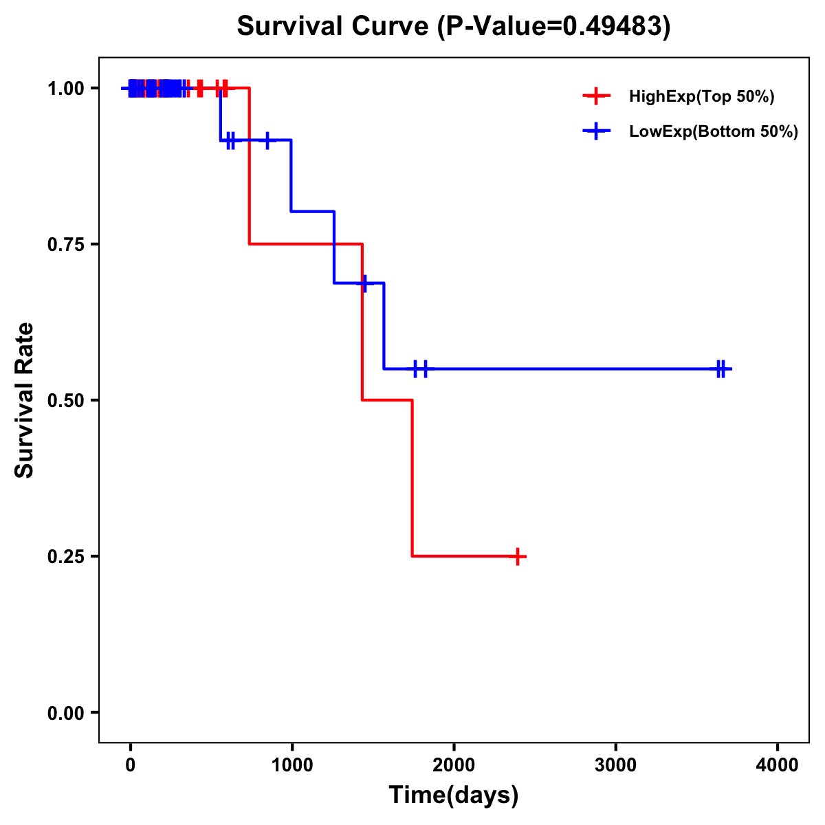 | Survival Curve of Colon Cancer on Expression Level |