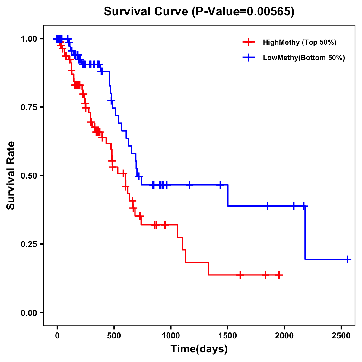 | Survival Curve of Pancreatic Cancer of Expression | Survival Curve of Pancreatic Cancer of Methylation | ||