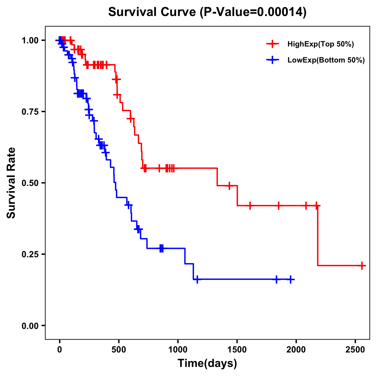| Survival Curve of Pancreatic Cancer of Expression | Survival Curve of Pancreatic Cancer of Methylation | ||
