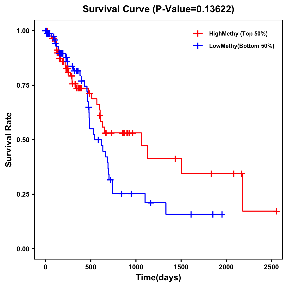 | Survival Curve of Pancreatic Cancer of Expression | Survival Curve of Pancreatic Cancer of Methylation | ||