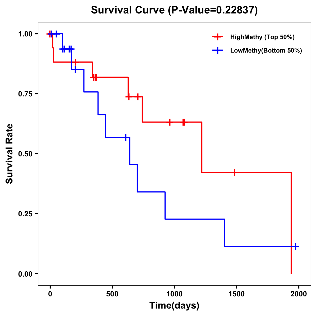 | Survival Curve of Biliary tract Cancer of Expression | Survival Curve of Biliary tract Cancer of Methylation | ||