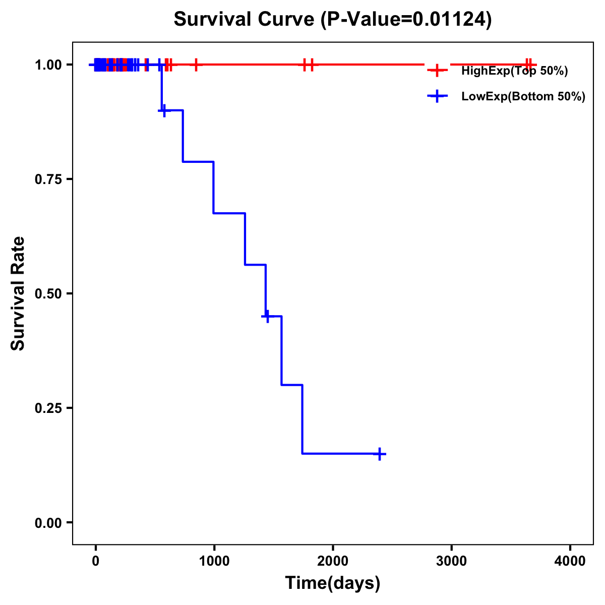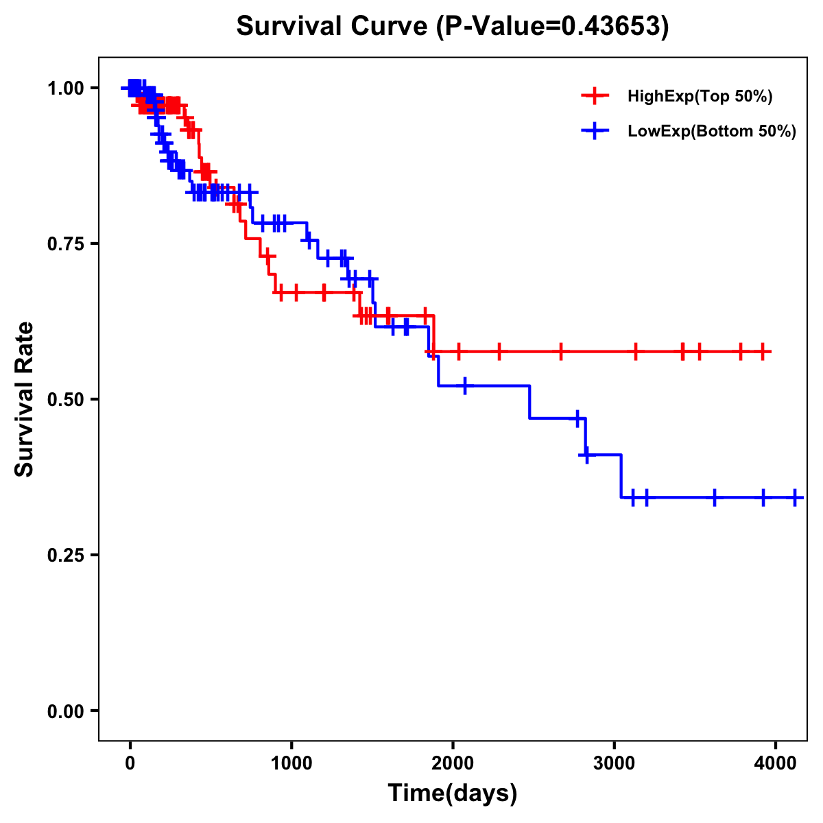 | Survival Curve of Colon Cancer on Expression Level |
