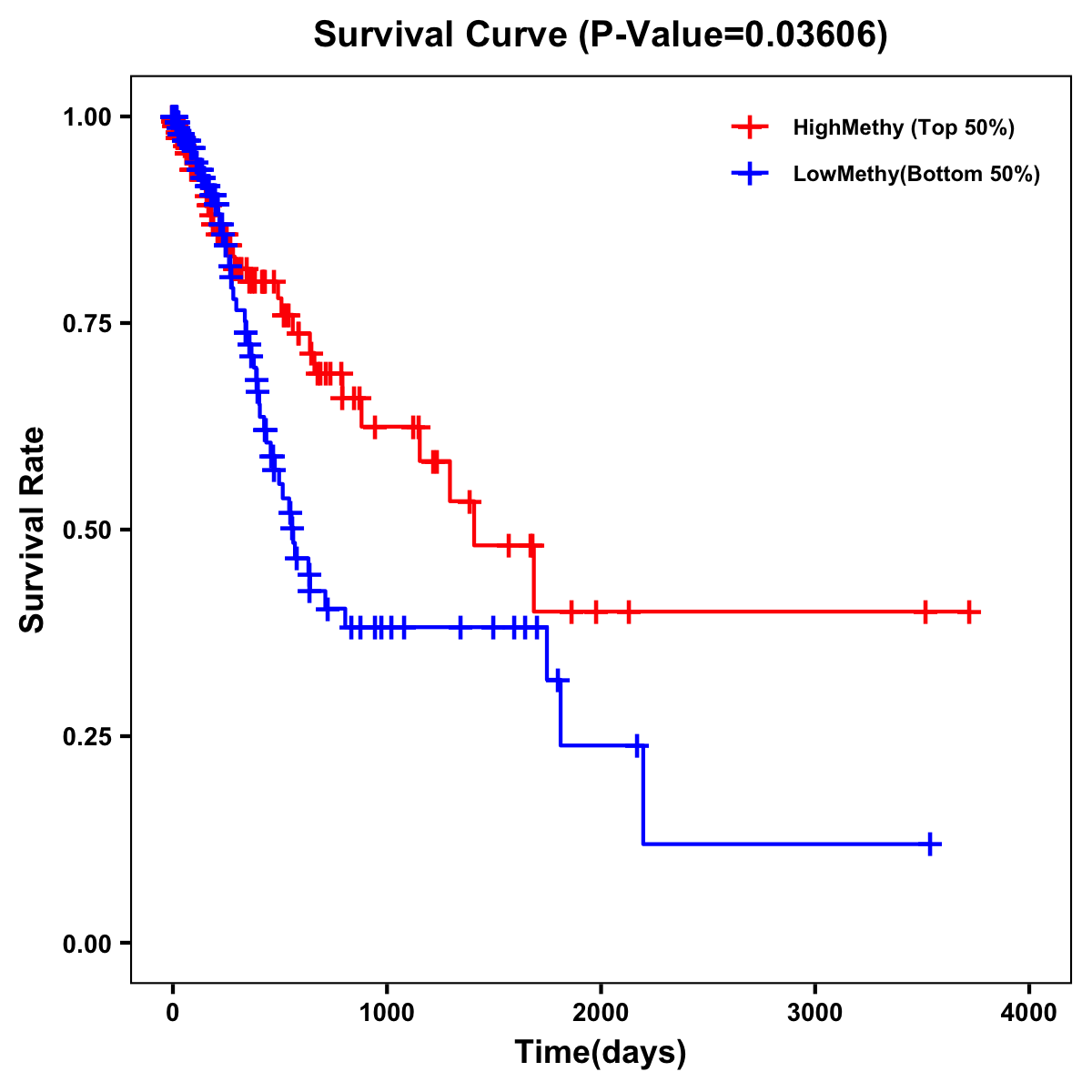 | Survival Curve of Stomach Cancer of Expression | Survival Curve of Stomach Cancer of Methylation | ||