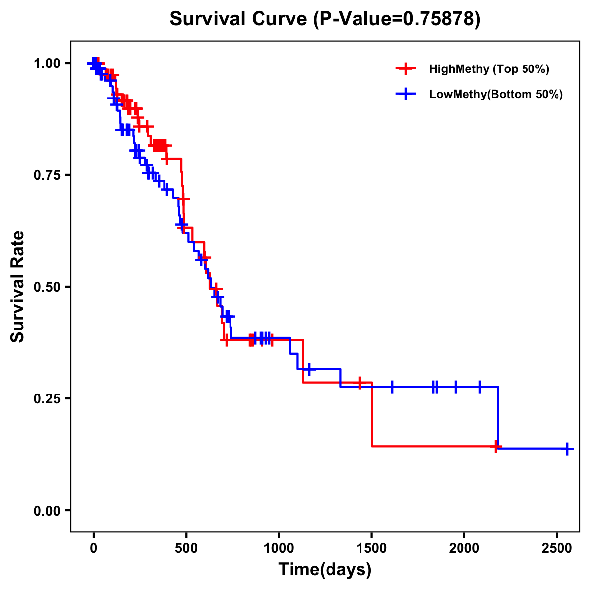 | Survival Curve of Pancreatic Cancer of Expression | Survival Curve of Pancreatic Cancer of Methylation | ||