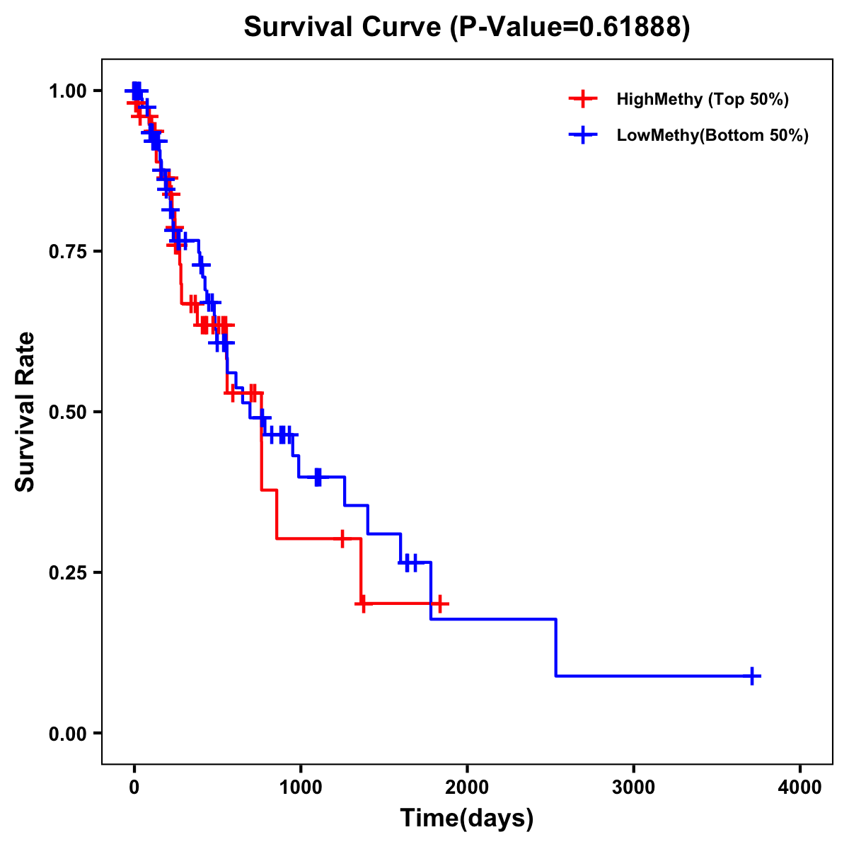 | Survival Curve of Esophagus Cancer of Expression | Survival Curve of Esophagus Cancer of Methylation | ||