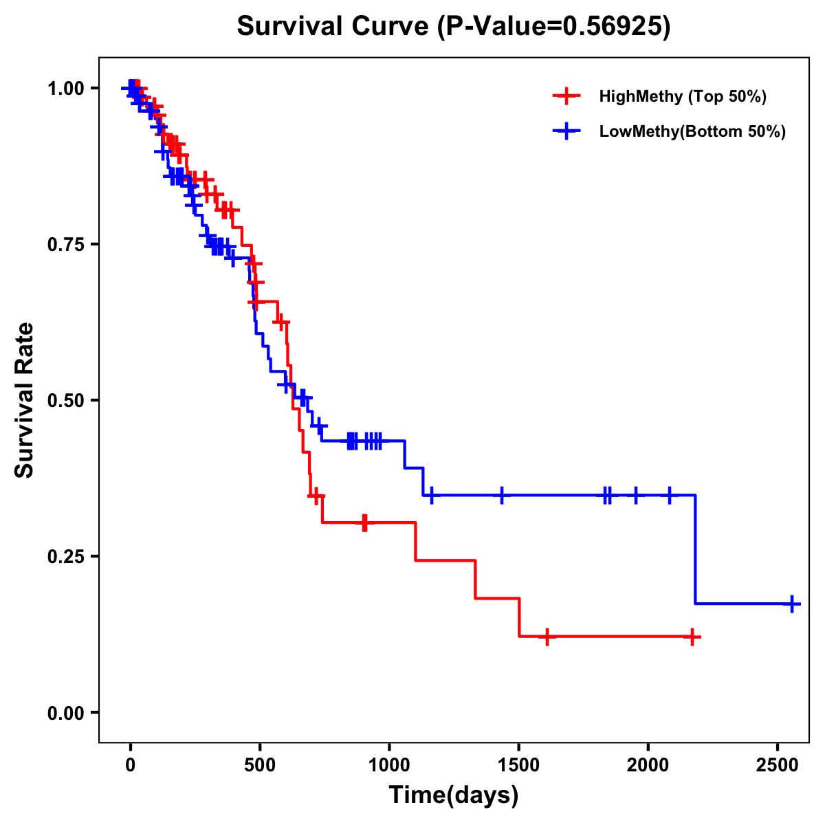| Survival Curve of Pancreatic Cancer of Expression | Survival Curve of Pancreatic Cancer of Methylation | ||