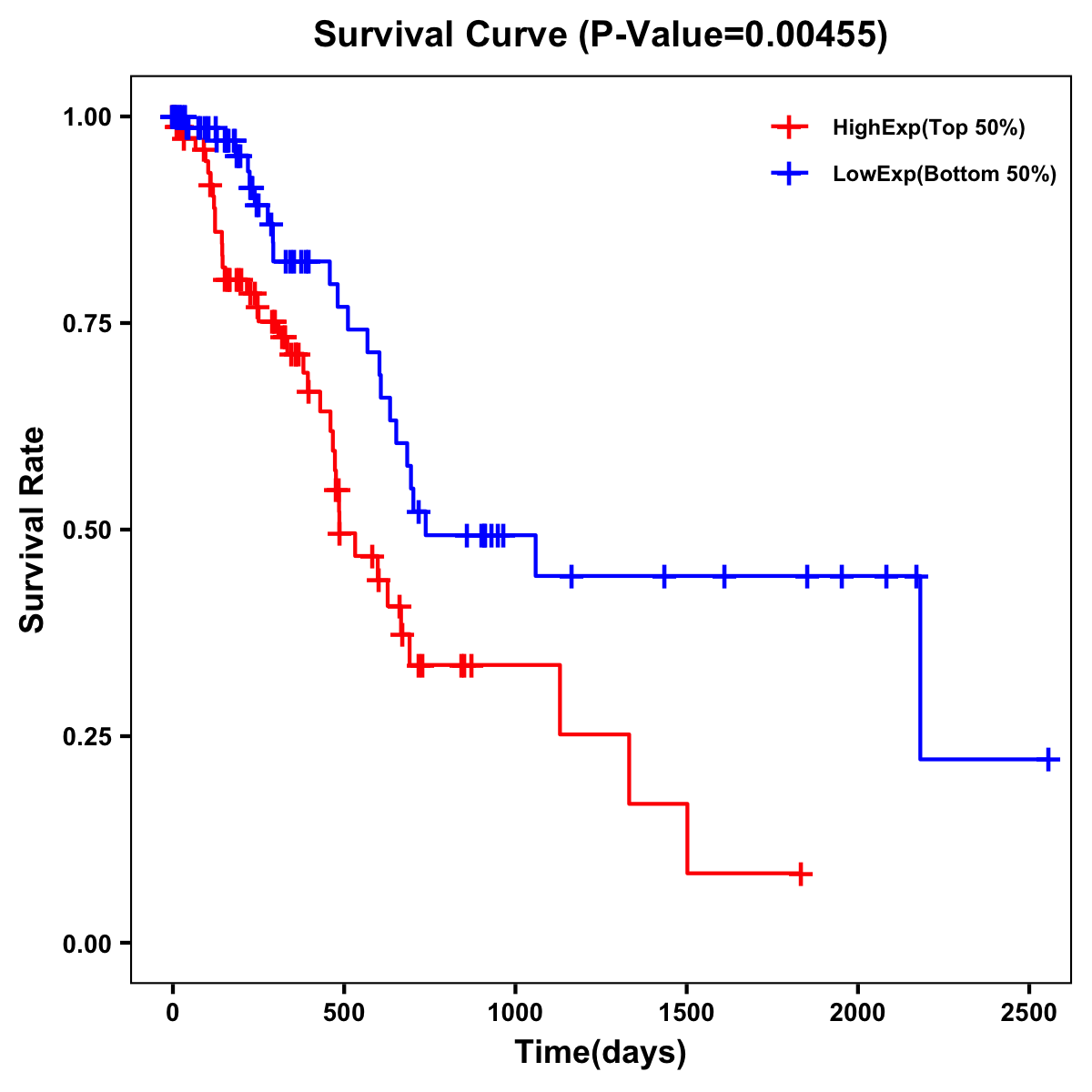| Survival Curve of Pancreatic Cancer of Expression | Survival Curve of Pancreatic Cancer of Methylation | ||
