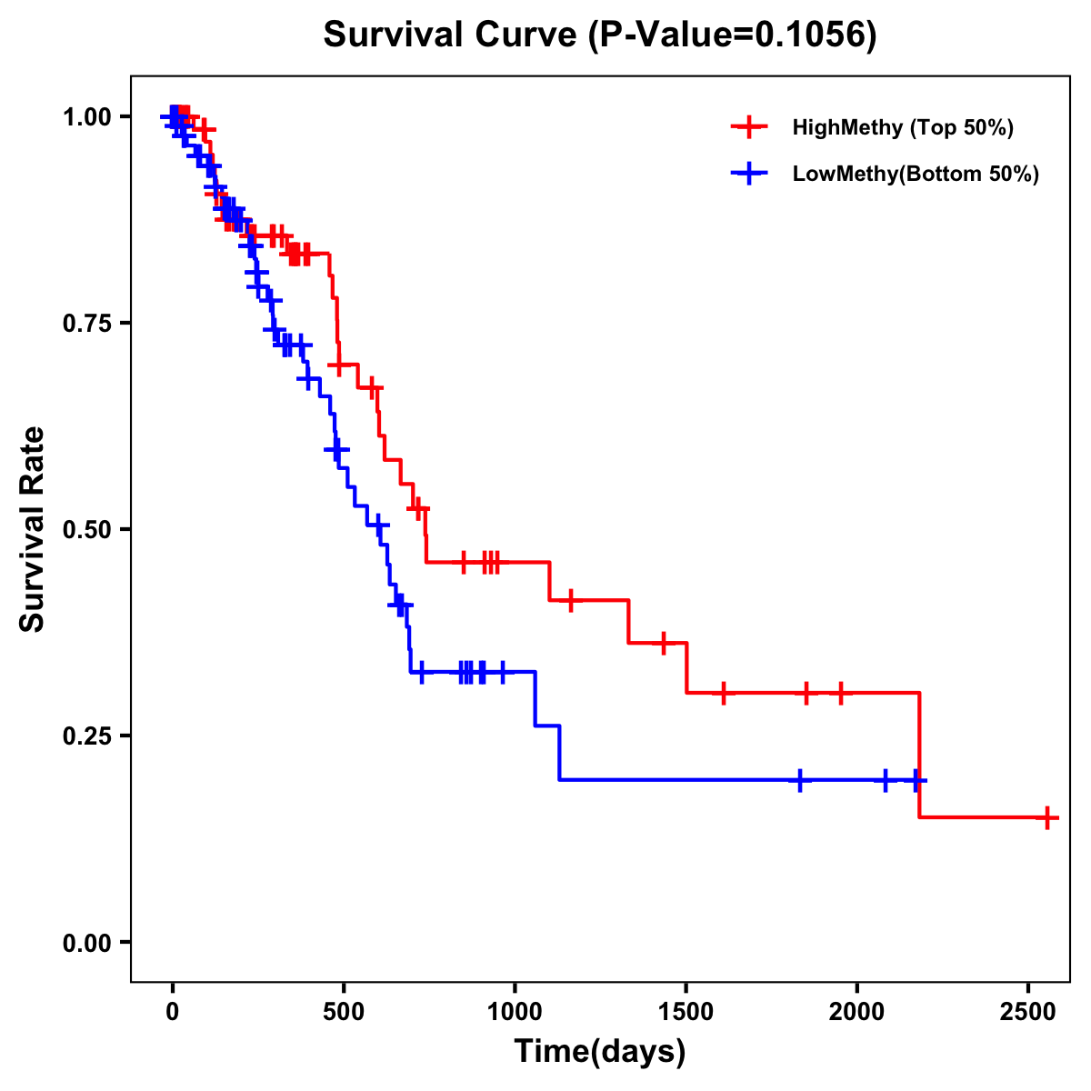 | Survival Curve of Pancreatic Cancer of Expression | Survival Curve of Pancreatic Cancer of Methylation | ||