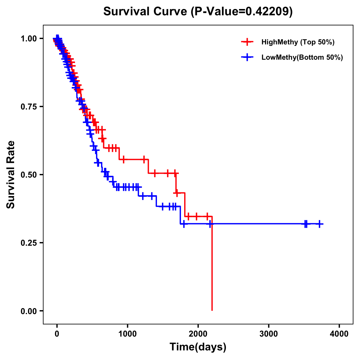 | Survival Curve of Stomach Cancer of Expression | Survival Curve of Stomach Cancer of Methylation | ||