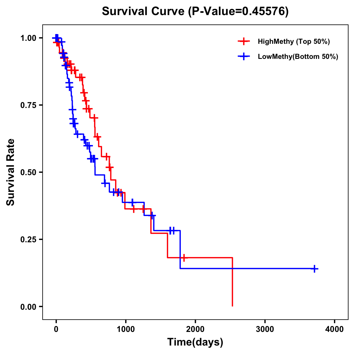 | Survival Curve of Esophagus Cancer of Expression | Survival Curve of Esophagus Cancer of Methylation | ||