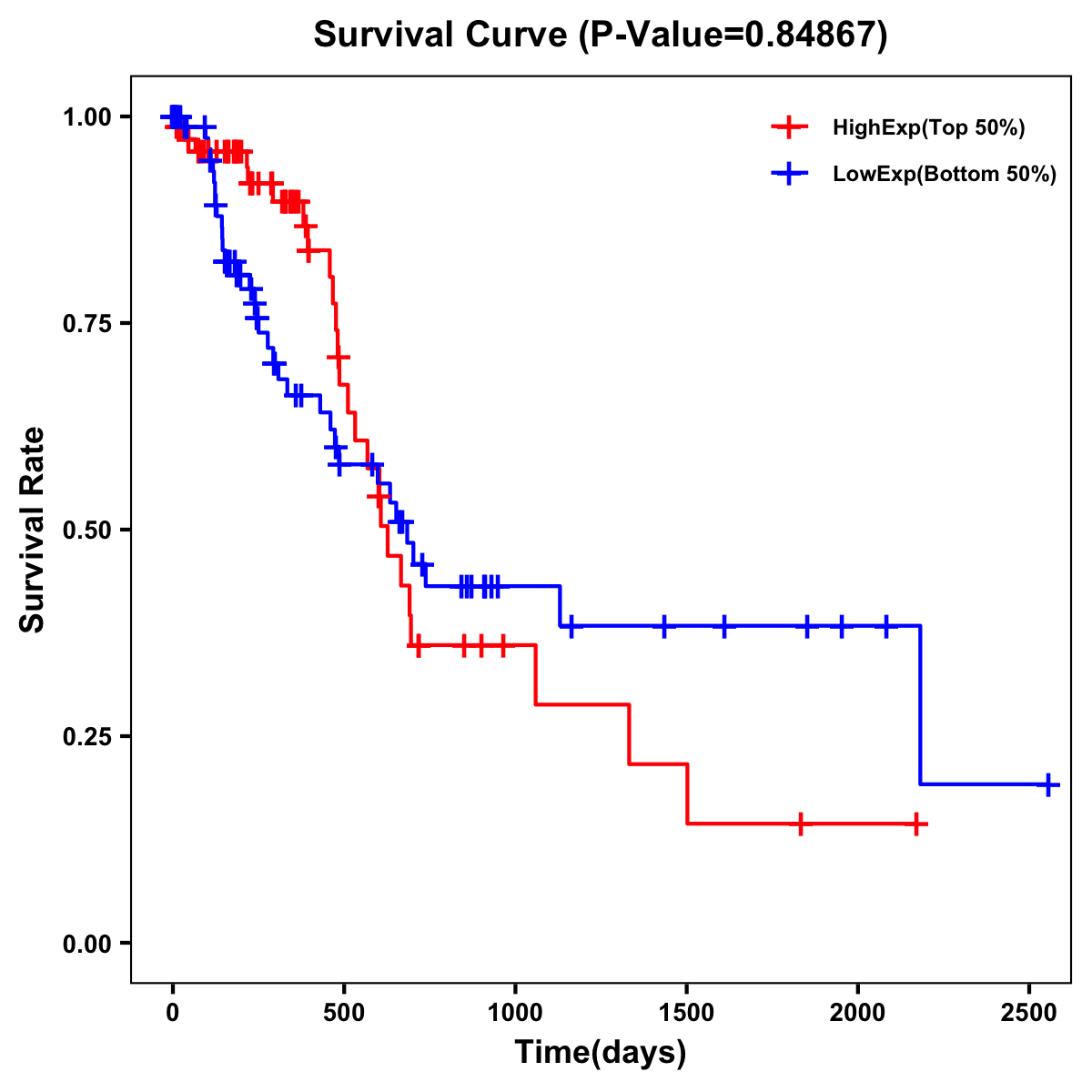 | Survival Curve of Pancreatic Cancer of Expression | Survival Curve of Pancreatic Cancer of Methylation | ||