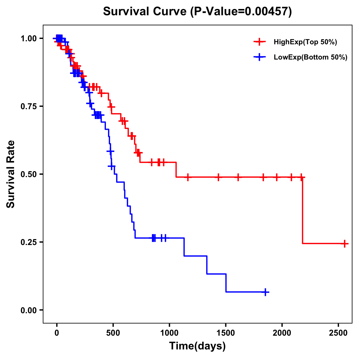 | Survival Curve of Pancreatic Cancer of Expression | Survival Curve of Pancreatic Cancer of Methylation | ||