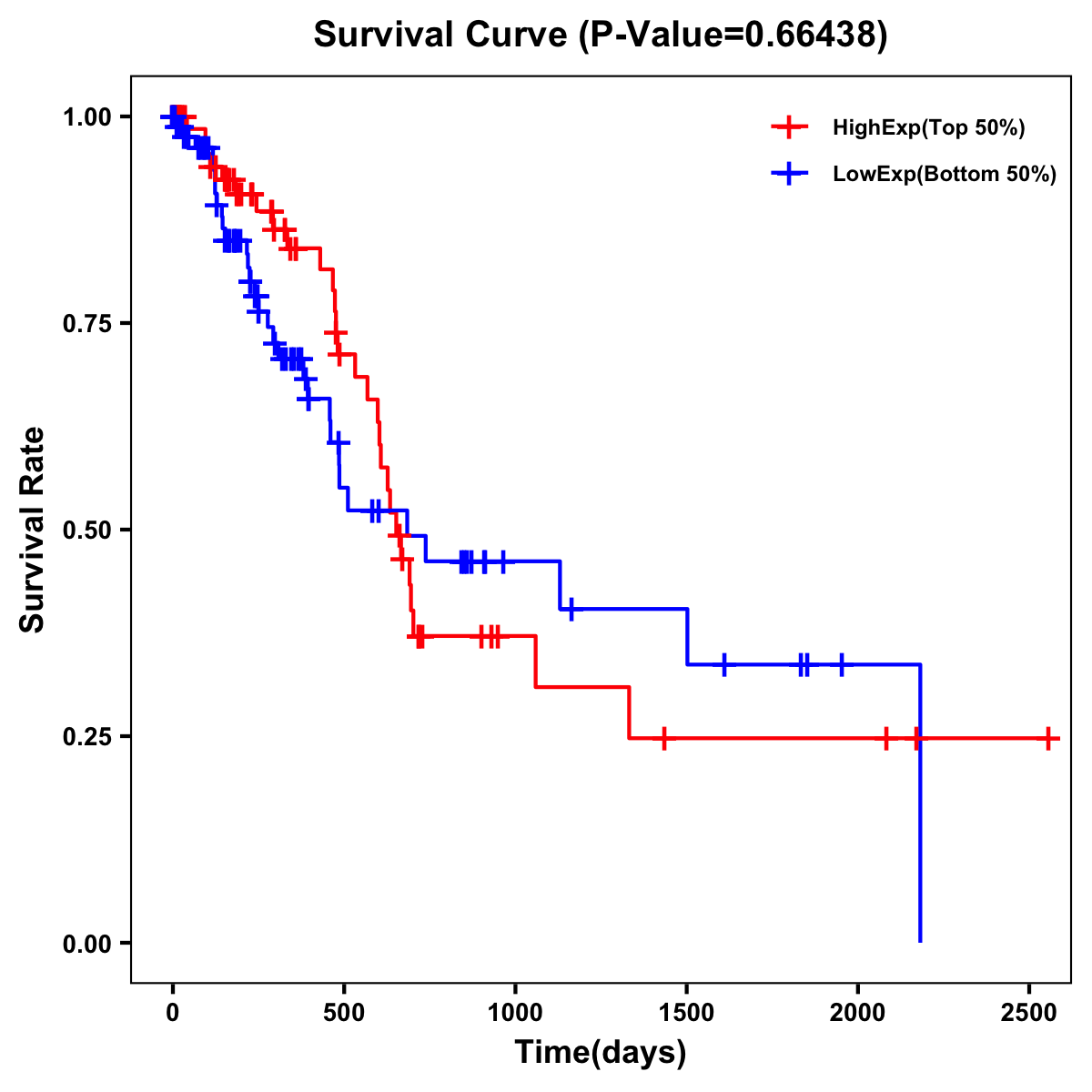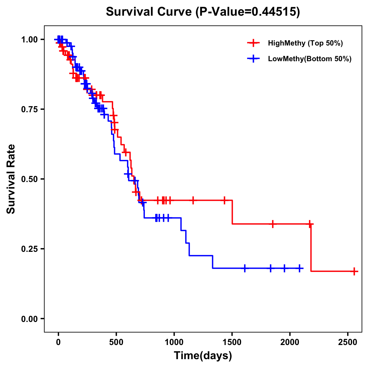 | Survival Curve of Pancreatic Cancer of Expression | Survival Curve of Pancreatic Cancer of Methylation | ||