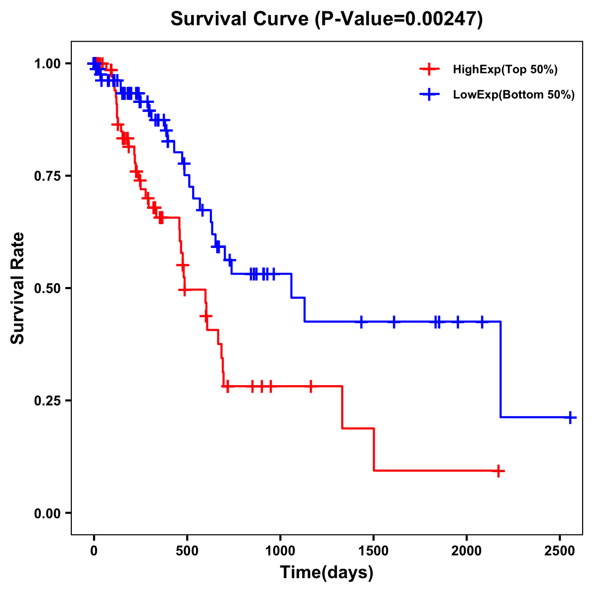 | Survival Curve of Pancreatic Cancer of Expression | Survival Curve of Pancreatic Cancer of Methylation | ||