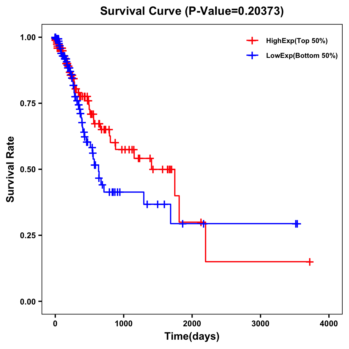 | Survival Curve of Stomach Cancer of Expression | Survival Curve of Stomach Cancer of Methylation | ||