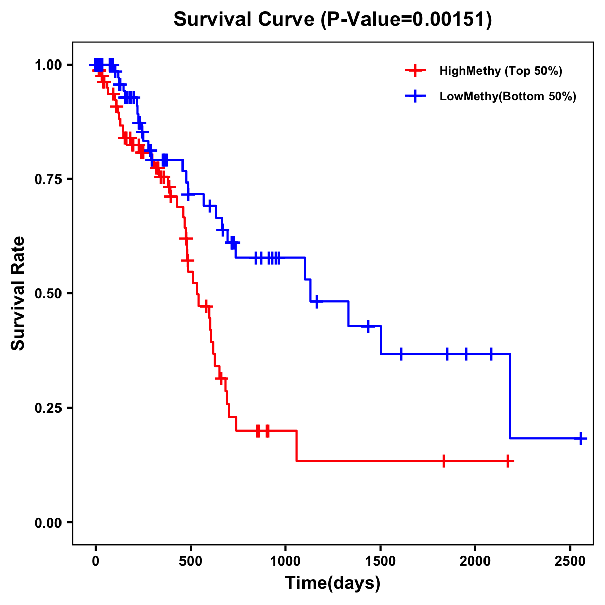 | Survival Curve of Pancreatic Cancer of Expression | Survival Curve of Pancreatic Cancer of Methylation | ||