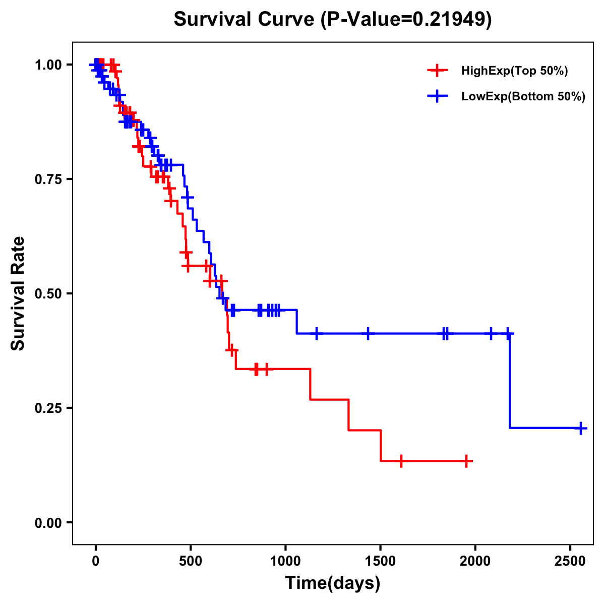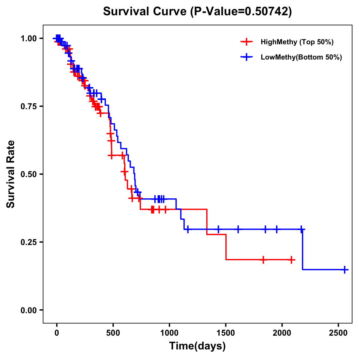 | Survival Curve of Pancreatic Cancer of Expression | Survival Curve of Pancreatic Cancer of Methylation | ||