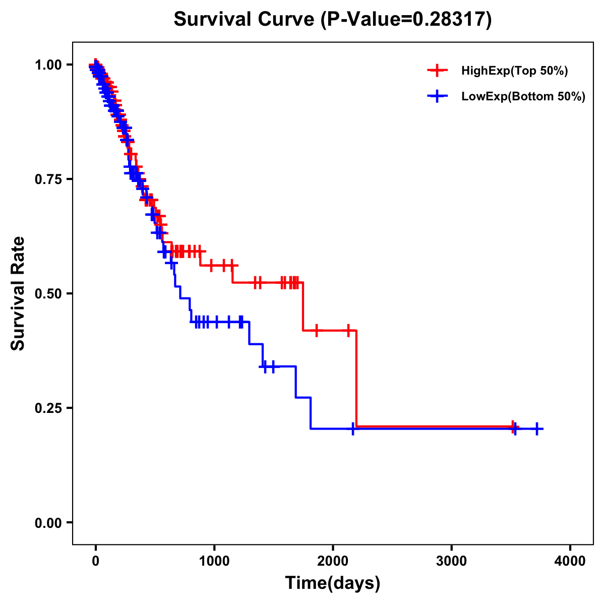 | Survival Curve of Stomach Cancer of Expression | Survival Curve of Stomach Cancer of Methylation | ||