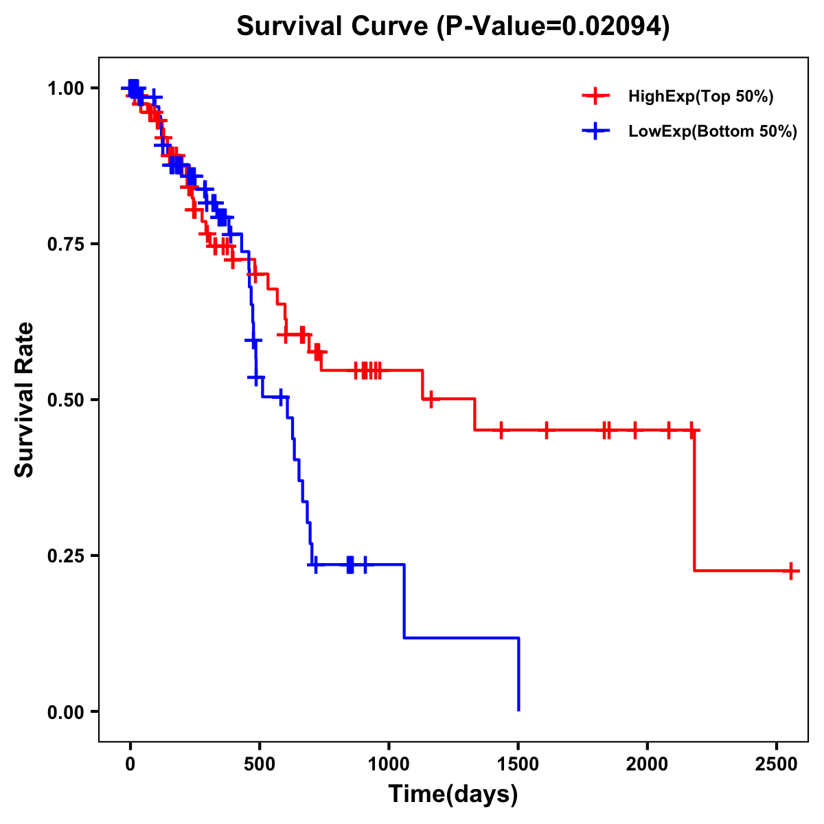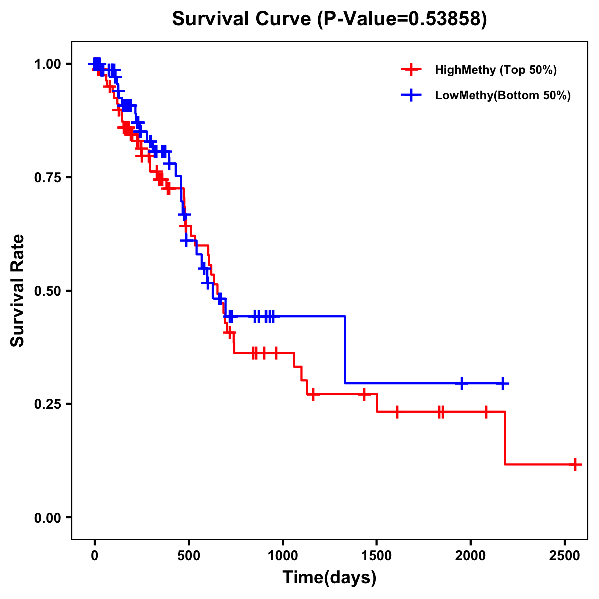 | Survival Curve of Pancreatic Cancer of Expression | Survival Curve of Pancreatic Cancer of Methylation | ||
