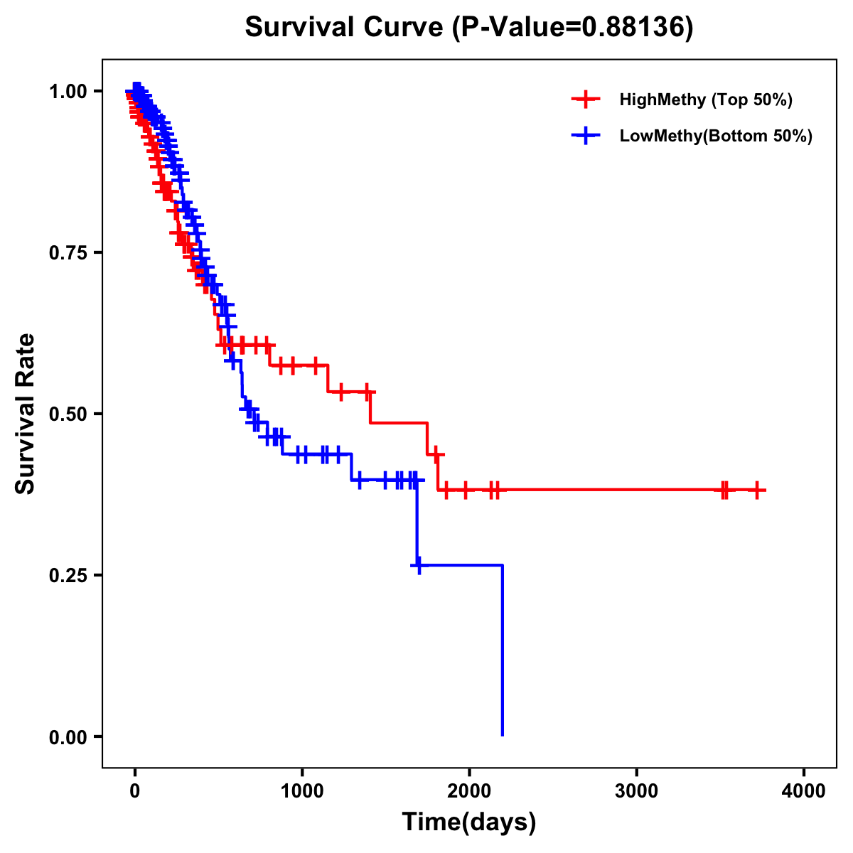 | Survival Curve of Stomach Cancer of Expression | Survival Curve of Stomach Cancer of Methylation | ||