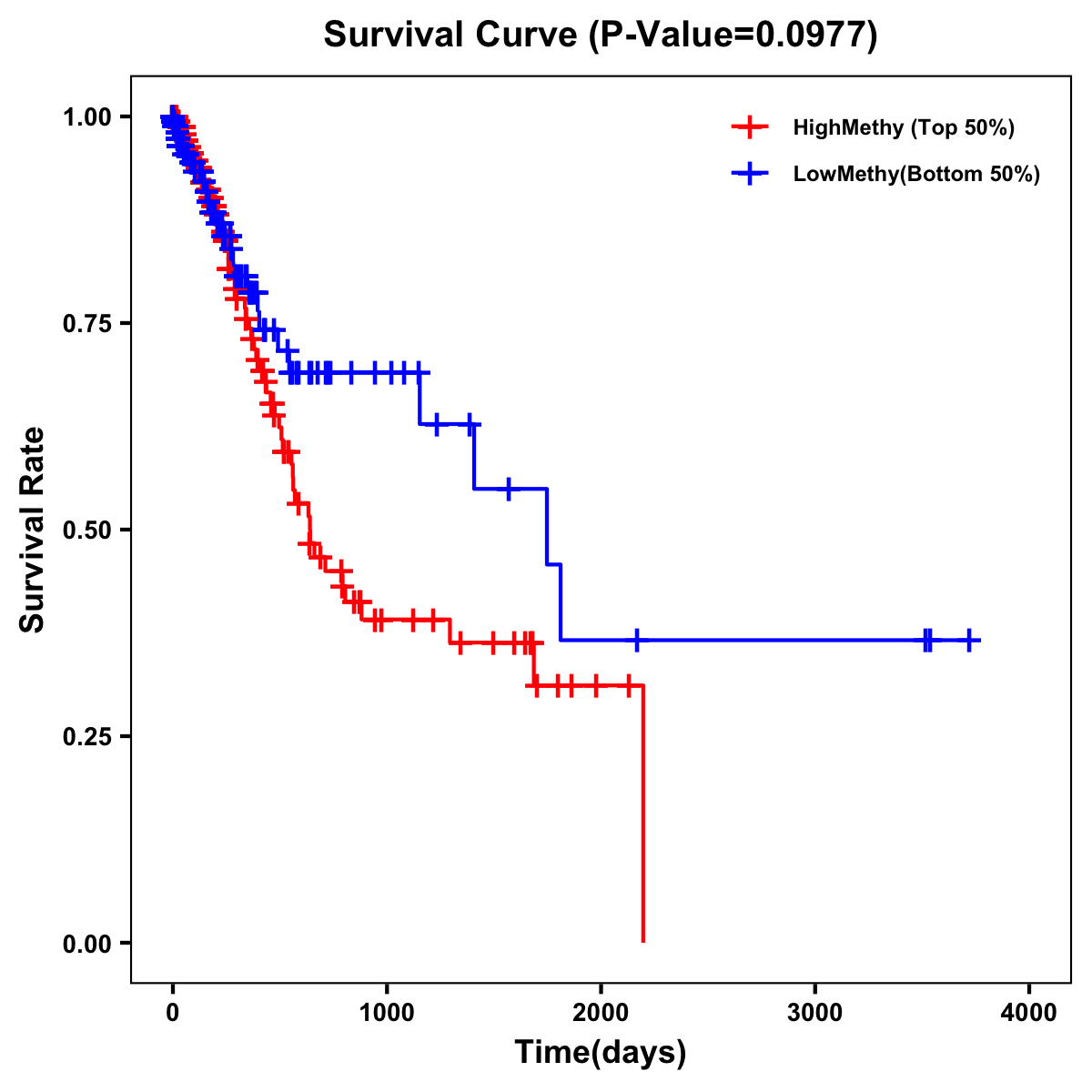 | Survival Curve of Stomach Cancer of Expression | Survival Curve of Stomach Cancer of Methylation | ||