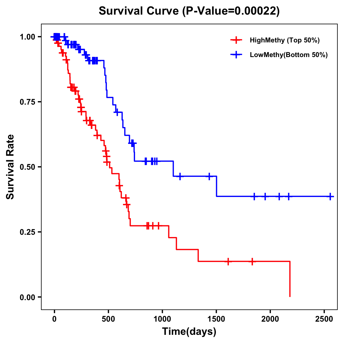| Survival Curve of Pancreatic Cancer of Expression | Survival Curve of Pancreatic Cancer of Methylation | ||