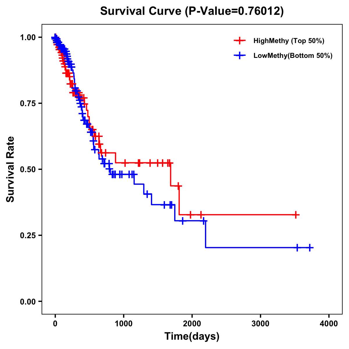 | Survival Curve of Stomach Cancer of Expression | Survival Curve of Stomach Cancer of Methylation | ||