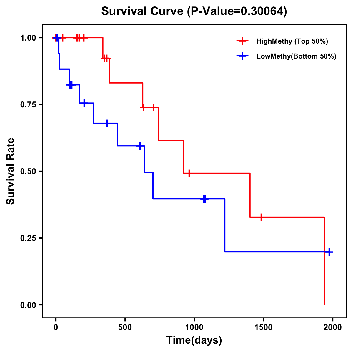 | Survival Curve of Biliary tract Cancer of Expression | Survival Curve of Biliary tract Cancer of Methylation | ||